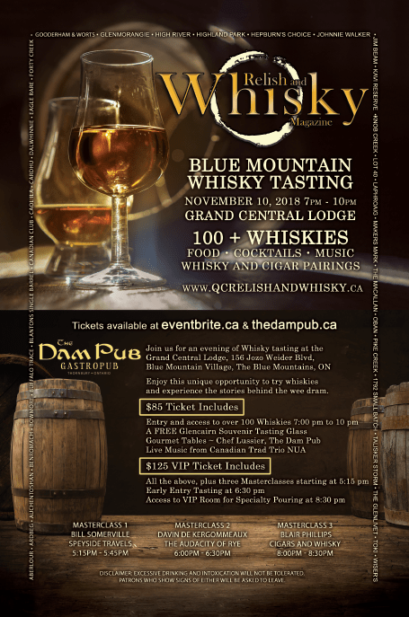 The Dam Pub: Stephanie Price, the Blue Mountains own Whisky Master, operates her family owned Scottish Gastropub in Thornbury, Ontario. Arguably the largest licensed whisky collection in North America, The Dam Pub offers over 935 whisky expressions available to its Patrons.