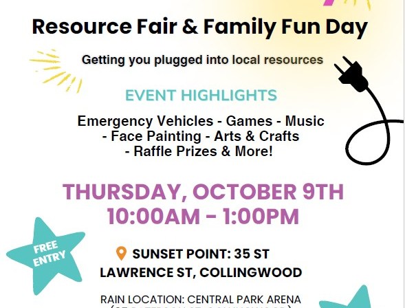 Sunset Point, 35 St. Lawrence St., Collingwood Simcoe County Community Action Program for Children (CAPC), is hosting a FREE community event for families, with children aged 0-6 years.